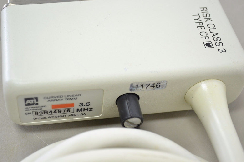 The ATL CLA 3.5 76 Curved Array Convex Abdominal Probe (11746 B32) is a high-quality ultrasound transducer designed for deep tissue imaging in a variety of clinical applications, including abdominal and obstetric diagnostics. Featuring a 3.5 MHz frequency and a 76mm footprint, this curved array convex probe provides exceptional depth penetration and high-resolution imaging of organs such as the liver, kidneys, spleen, and uterus. Ideal for both routine and complex abdominal examinations, the CLA 3.5 76 ensures clear visualization of deeper structures, making it an essential tool for accurate diagnosis and effective treatment planning. The probe’s ergonomic design allows for easy handling and patient comfort, even during extended procedures. Compatible with ATL ultrasound systems, it offers seamless integration and reliable performance. Whether used for abdominal scans, prenatal monitoring, or general diagnostic imaging, the ATL CLA 3.5 76 Convex Probe delivers superior image quality and precision for healthcare professionals.